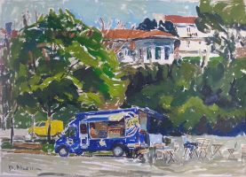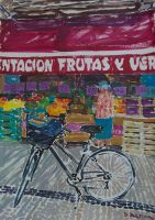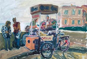 Carrito bici de musica. 2024 la corniste "la voie est libre" Marseille. Oléoduc sobre papel 40x30