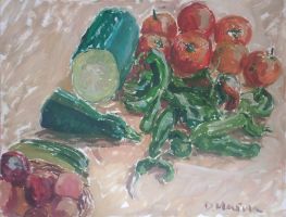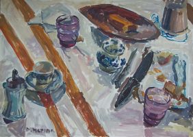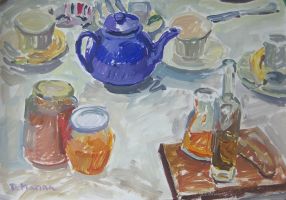 Desayuno con fruta, 2009 - acrílico sobre papel - 80x70