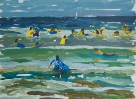 Escuela de surf, 2013 - acrílico sobre papel - 40x30