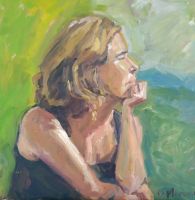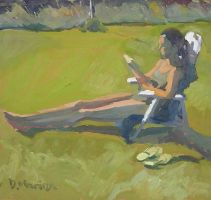 Ruth leyendo, 2004 - óleo sobre tabla - 44x41