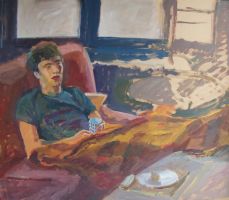 Luis leyendo, 2008 - óleo sobre tabla - 41x44