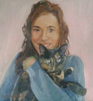 Tati y la gata, 2013 - óleo sobre lienzo - 50x50