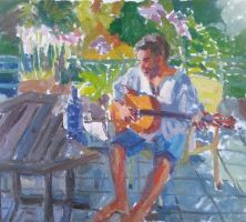 Luis tocando la guitarra 2018 óleo sobre lienzo