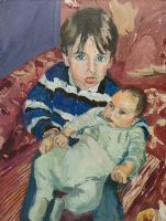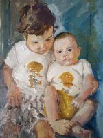 Niña con su hermano. 2021- óleo sobre lienzo - 35x45